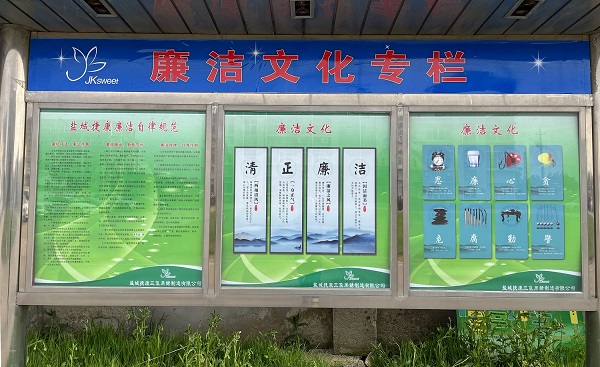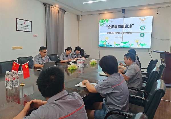 《飛尚集團廉潔自律管理制度》發布后,各成員企業相繼出臺本企業廉潔自律管理制度和各項管理規定,并通過微信工作群廣泛宣傳,不斷健全員工參與機制,充分發揮員工的積極性、創造性,夯實廉潔文化建設的群眾基礎。江西飛尚林產有限公司通過座談會進行深入宣貫,鹽城捷康三氯蔗糖制造有限公司打造了廉潔文化長廊,拓寬了宣貫渠道和方式。
